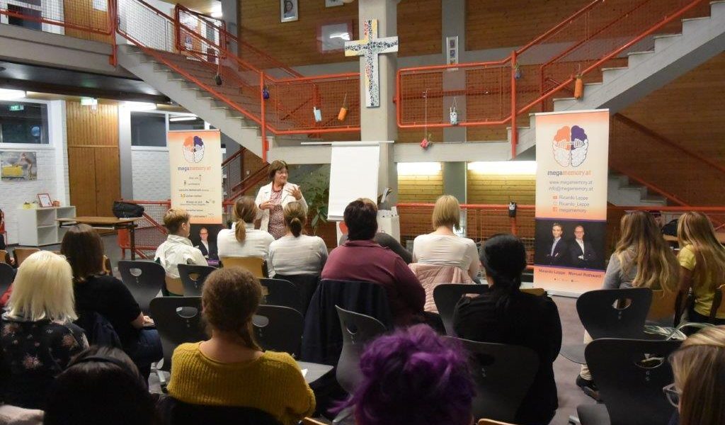 Um die Schülerinnen und Schüler beim Lernen bestmöglich zu unterstützen, wurde am 03.10.2019 in der NMS Mauer „Megamemory“ vorgestellt. Dabei handelt es sich um ein effektives Gedächtsnistraining, das sowohl Kindern als auch Erwachsenen im Beruf und Alltag verbesserte Möglichkeiten des Merkens bietet. Die beiden Trainer Manuel und Elias zeigten den Schülerinnen und Schülern, den Lehrerinnen und Lehrern, den Eltern und