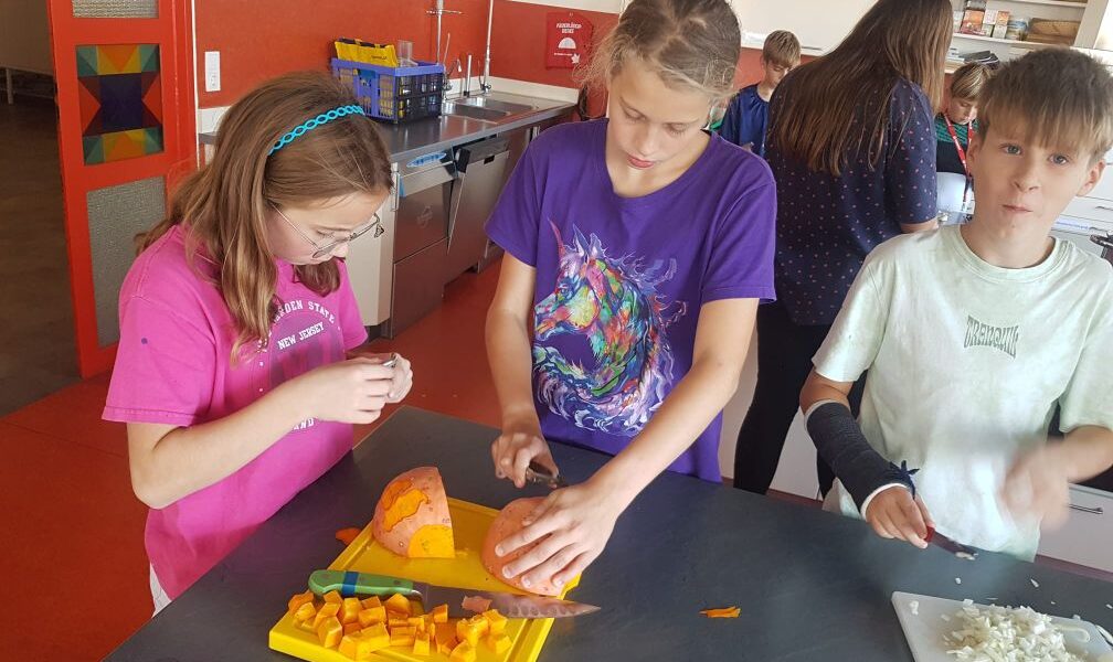 Die 2A kochte gemeinsam mit Frau Schelch und Frau Siegl im GESO Unterricht eine leckere Kürbissuppe. Die Schüler:innen bereiteten die Suppe nach dem Rezept vor und ließen sich anschließend die besonders leckere Suppe schmecken.