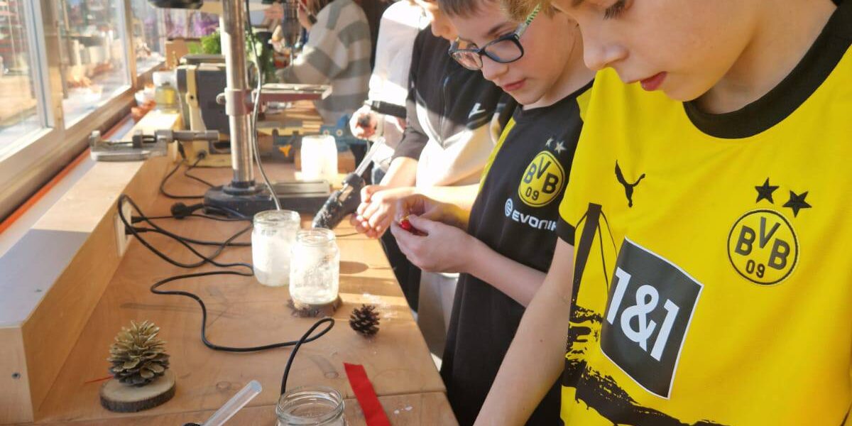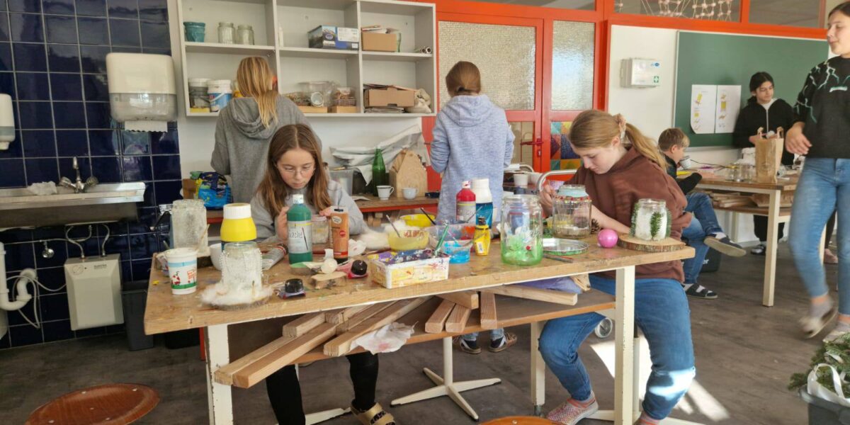 Mit einer festlichen Atmosphäre und einer Fülle von kreativen Aktivitäten haben wir das vergangene Jahr in unserer Schulwerkstatt gebührend verabschiedet. Punsch, köstliche Kekse und stimmungsvolle Musik schufen den Rahmen für einen unvergesslichen Abschluss. Das Thema Upcycling stand im Mittelpunkt unserer Feierlichkeiten. Schüler:innen aller Klassenstufen hatten die Gelegenheit, ihre Kreativität und handwerklichen Fähigkeiten zu entfalten. Von der Umgestaltung gebrauchter Materialien